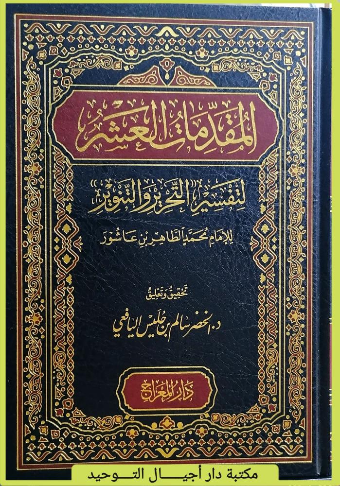 المقدمات العشر لتفسير التحرير والتنوير ... "هذا الكتاب بحق مدونة علمية عالية الاداء والعطاء , قوية الحجاج والنتاج , غزيرة المحصول والخراج . للامام / محمد الطاهر بن عاشور " طباعة فاخرة , ورق شمواه , مميزة بلونين " 456 صفحة